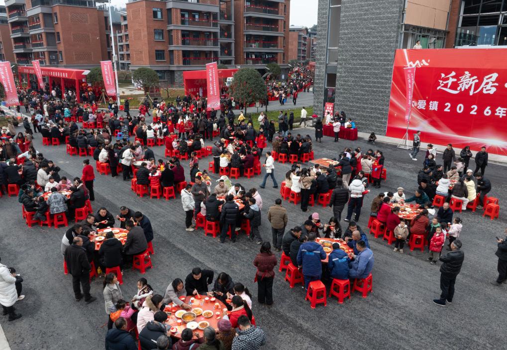 新华社成都1月31日电(记者赵一帆)1月31日,四川宜宾市筠连县沐爱镇金坪村新居文化广场举办迎新春暨百家宴活动,2025年“2·8”山体滑坡受灾群众入住新居。